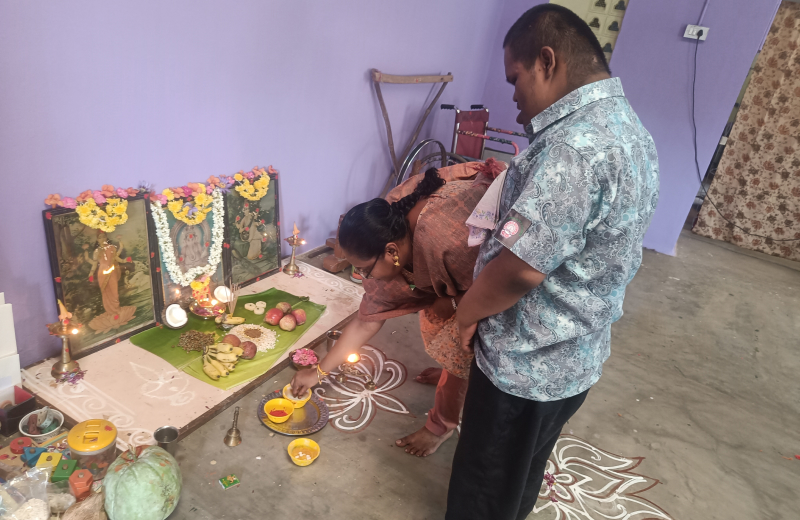 Professional physiotherapist visit Gnanadeepam thrice a week to impart physio therapeutically exercises.